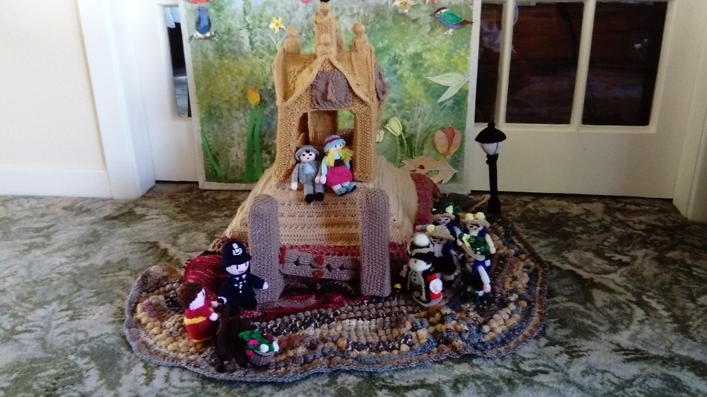 Somehow the whole thing was assembled, and has been much admired as part of a display in Warrington. No one knows for sure why the cross was built in the first place - one theory is that it commemorates an outbreak of plague. Our knitted version commemorates a twanty first century pandemic and the resilience of the crafting community.