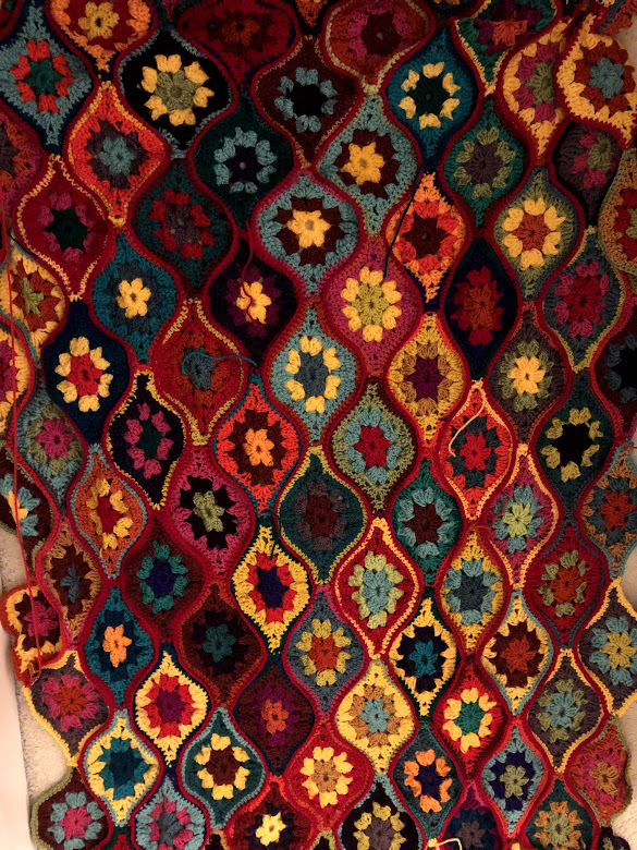 Later when the kids were in bed I went to tidy up the wool and decided to dig out my crochet hooks. the wool was all scraps and bits, so I started small. That night while watching the Downing Street briefing I made just one crochet square no bigger than the palm of my hand. A few weeks later I had 10, I sewed them into a strip. By the time the schools had reopened and closed again a day later I had 100. The act of having something real in my hands of completing a simple repetitive practice yet forming something unique and creative felt meditative- it helped me to just sit with my thoughts and worries and to take control of them. Counting the stitches, working with a structure requires patience, focus, and persistence. When everything else was falling out of routine when every day seemed the same, like our lives were stuck in limbo, this daily practice marked the time gave me a sense of productivity I didn't feel at work or home and gave me a quiet strength as I realised I could create something of comfort and beauty with my own hands.